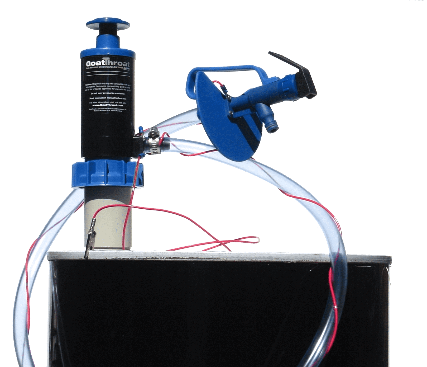 SCP Pumps are engineering controls for fluids which are designed to minimize the hazards associated when transferring  flammable and combustible liquids.  Featuring a grounding wire and a bonding wire and made with conductive plastic  so there is grounding of the liquid, the pump, and, with correct bonding, to the container. Created for most demanding safety programs, these pumps meet NFPA 77 which requires that the path to ground must prevent the accumulation of static electricity in conductive equipment. The SCP-pumps feature the same breakthrough technology which has made GoatThroat® the most trusted name in transfer pumps.